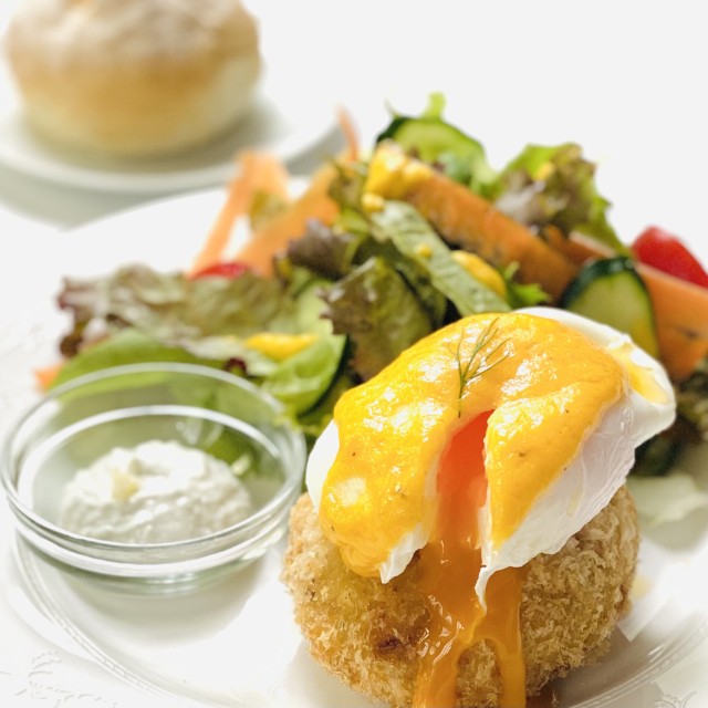 フィッシュケーキ&ポーチドエッグ